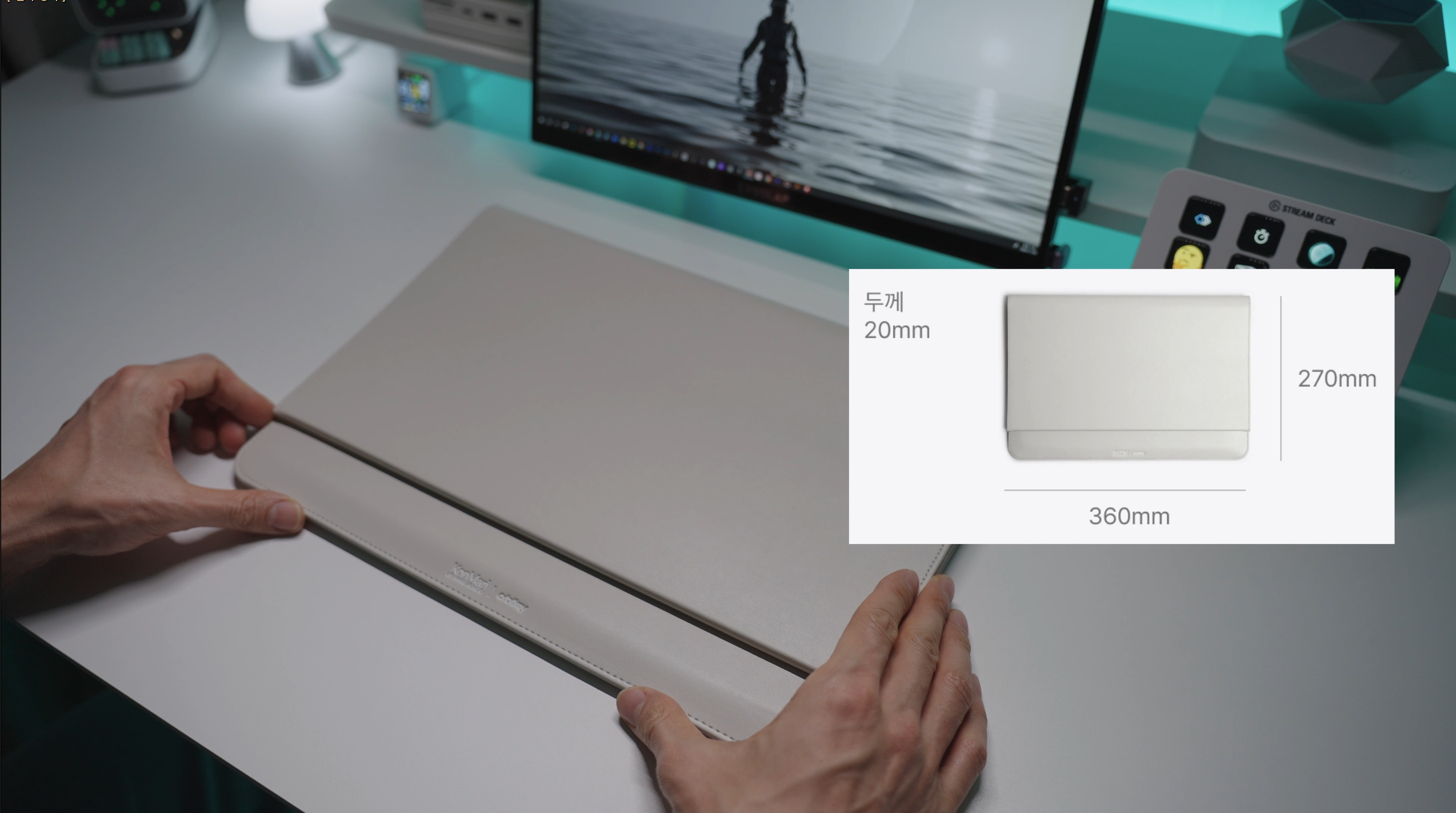 이 제품은 접으면 노트북 파우치, 펼치면 데스크매트 + 마우스패드가 되는 구조입니다.