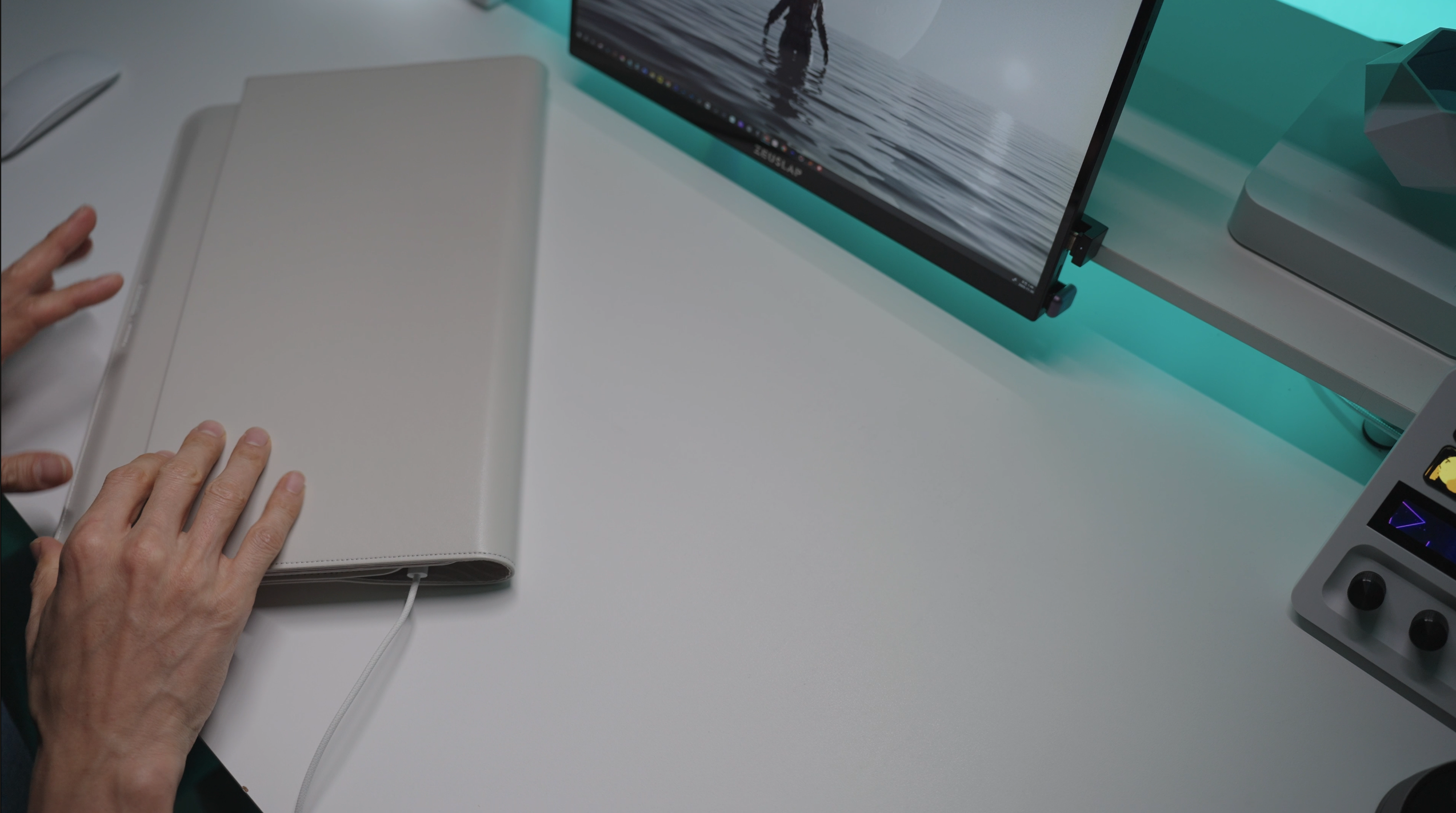 “파우치” + “데스크매트” + “마우스 패드” 기능을 하나로 합친 정말 하이브리드한 제품입니다.
